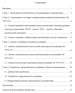 Тема: Экономико-математическое моделирование в менеджменте на примере ОК РУСАЛ