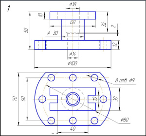 Начертить: а) главный вид детали в соединении с фронтальным разрезом; б) вид сверху; в) вид слева в соединении с профильным разрезом; г) прямоугольную изометрическую проекцию детали с разрезом.