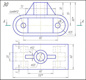 Начертить: а) главный вид в соединении с фронтальным разрезом; б) вид сверху в соединении с разрезом А-А; в) вид слева в соединении с профильным разрезом; г) прямоугольную изометрическую проекцию детали с разрезом.