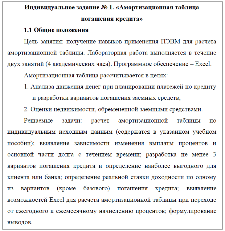 - Индивидуальное задание №1. Амортизационная таблица погашения кредита