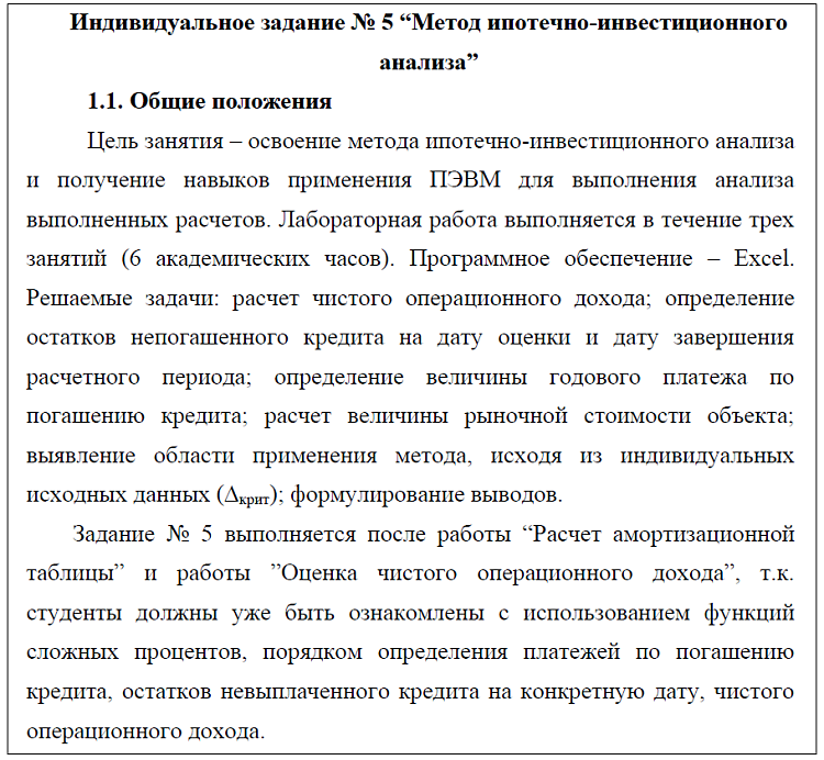 Индивидуальное задание №5. Метод ипотечно-инвестиционного анализа