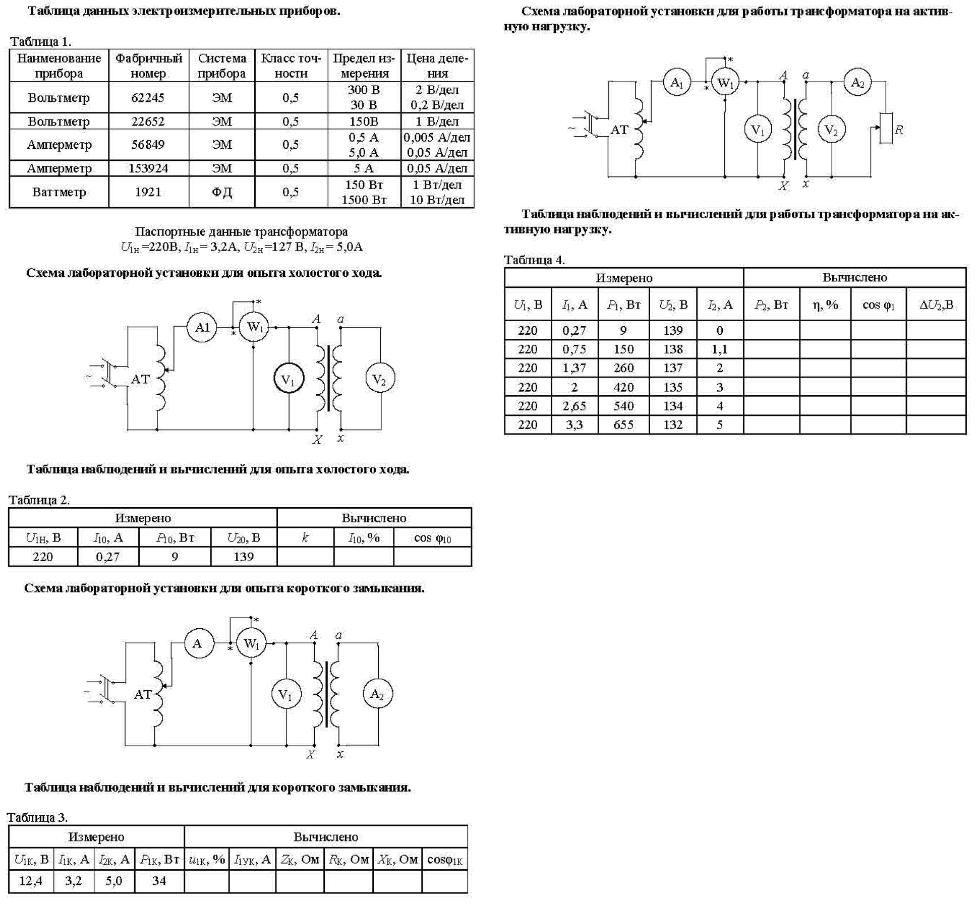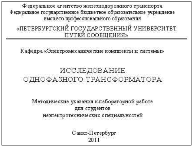 Исследование однофазного трансформатора