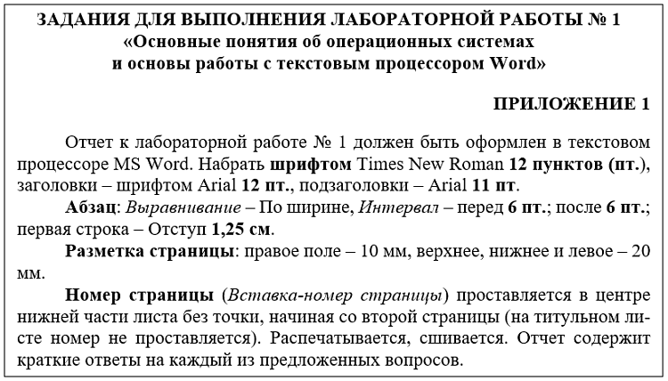 Лабораторная работа №1. Основные понятия об операционных системах и основы работы с текстовым процессором Word