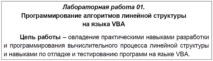 - Лабораторная работа №1. Программирование алгоритмов линейной структуры на языке VBA