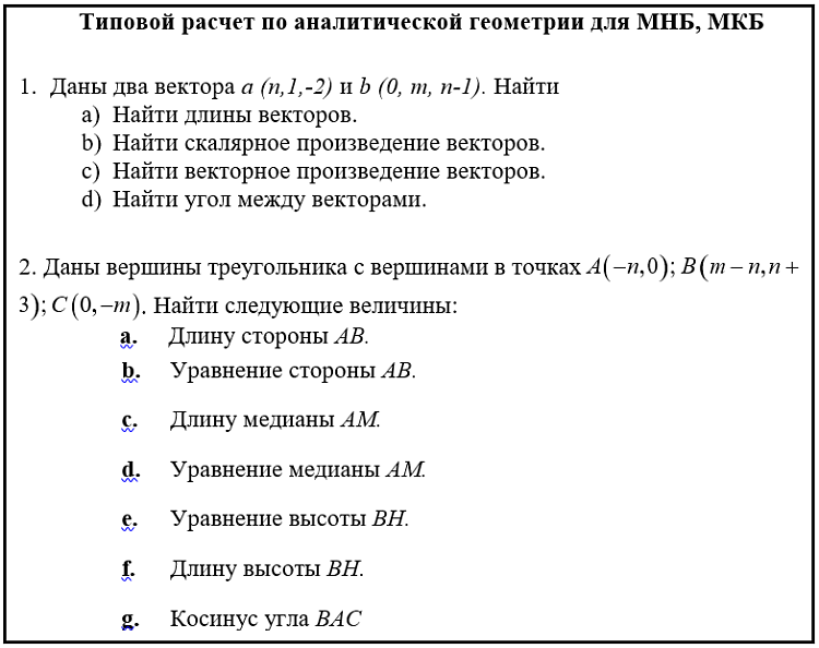 Типовой расчет по аналитической геометрии для МНБ, МКБ