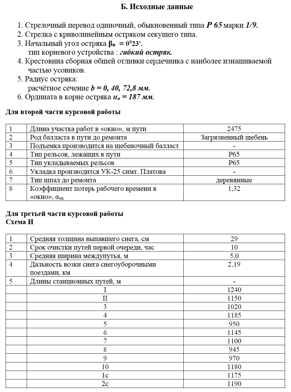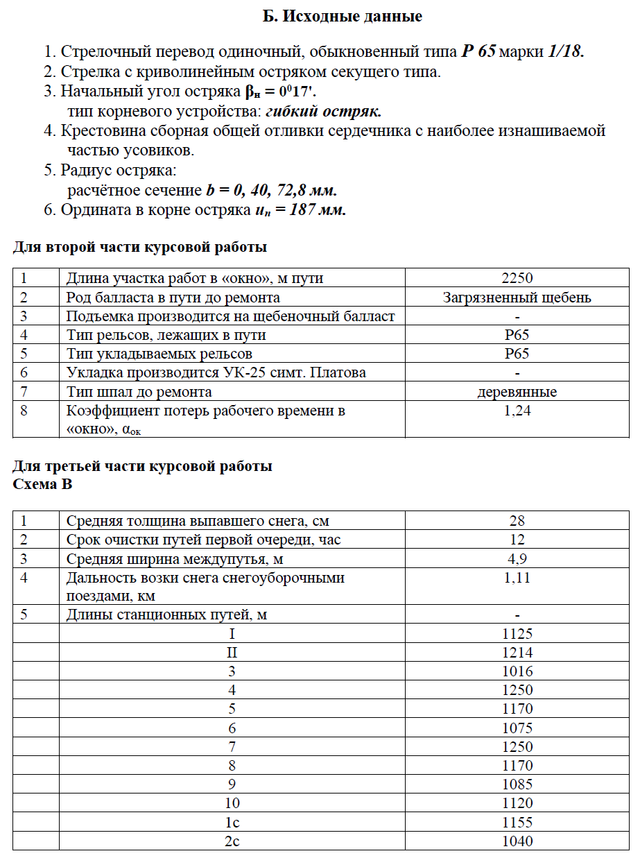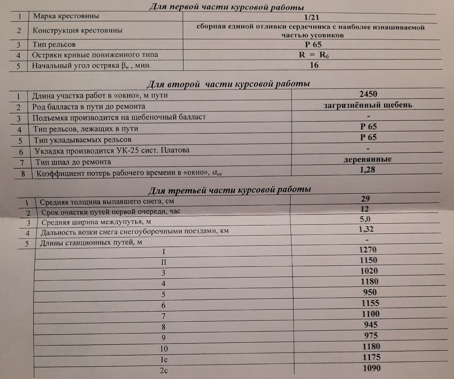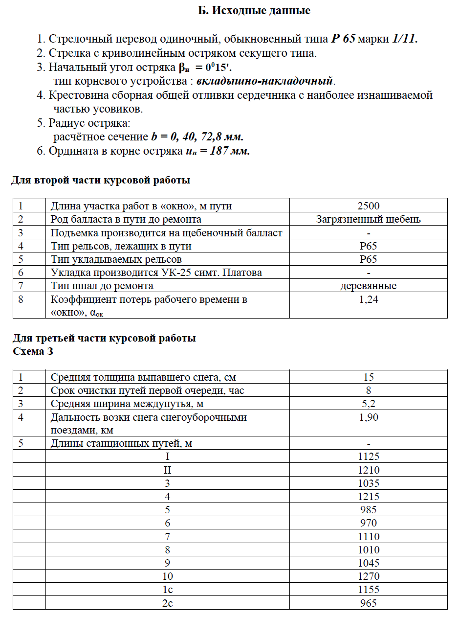 Тема. «Расчёт и проектирование одиночного обыкновенного стрелочного перевода. Определение необходимой продолжительности «окна» для производства основных работ по капитальному ремонту пути. Проектирование мероприятий по очистке от снежных заносов крупной станции»