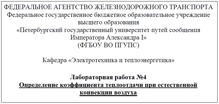 Лабораторная работа №4. Определение коэффициента теплоотдачи при естественной конвекции воздуха