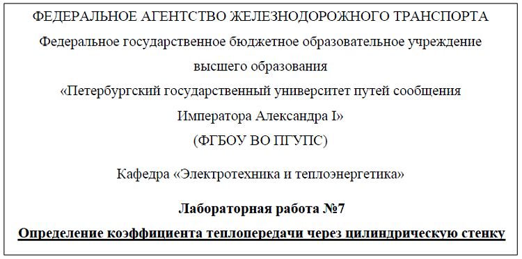- Лабораторная работа №7. Определение коэффициента теплопередачи через цилиндрическую стенку