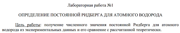 Лабораторная работа №1. ОПРЕДЕЛЕНИЕ ПОСТОЯННОЙ РИДБЕРГА ДЛЯ АТОМНОГО ВОДОРОДА
