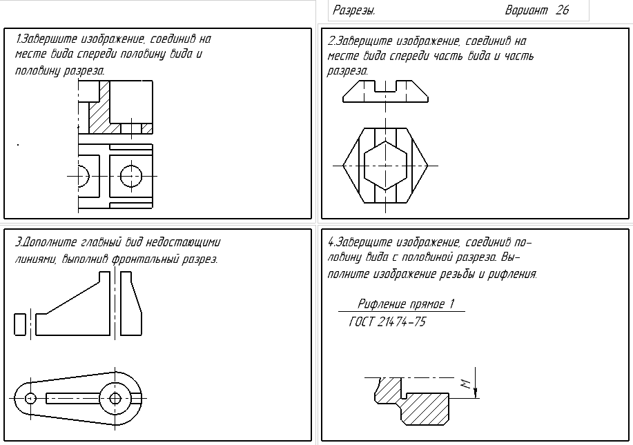 1. Завершить изображение, соединив на месте вида спереди половину вида и половину разреза.