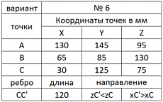 По координатам трех точек, размеру и направлению ребра требуется построить прямую треугольную призму, определить видимость ребер.