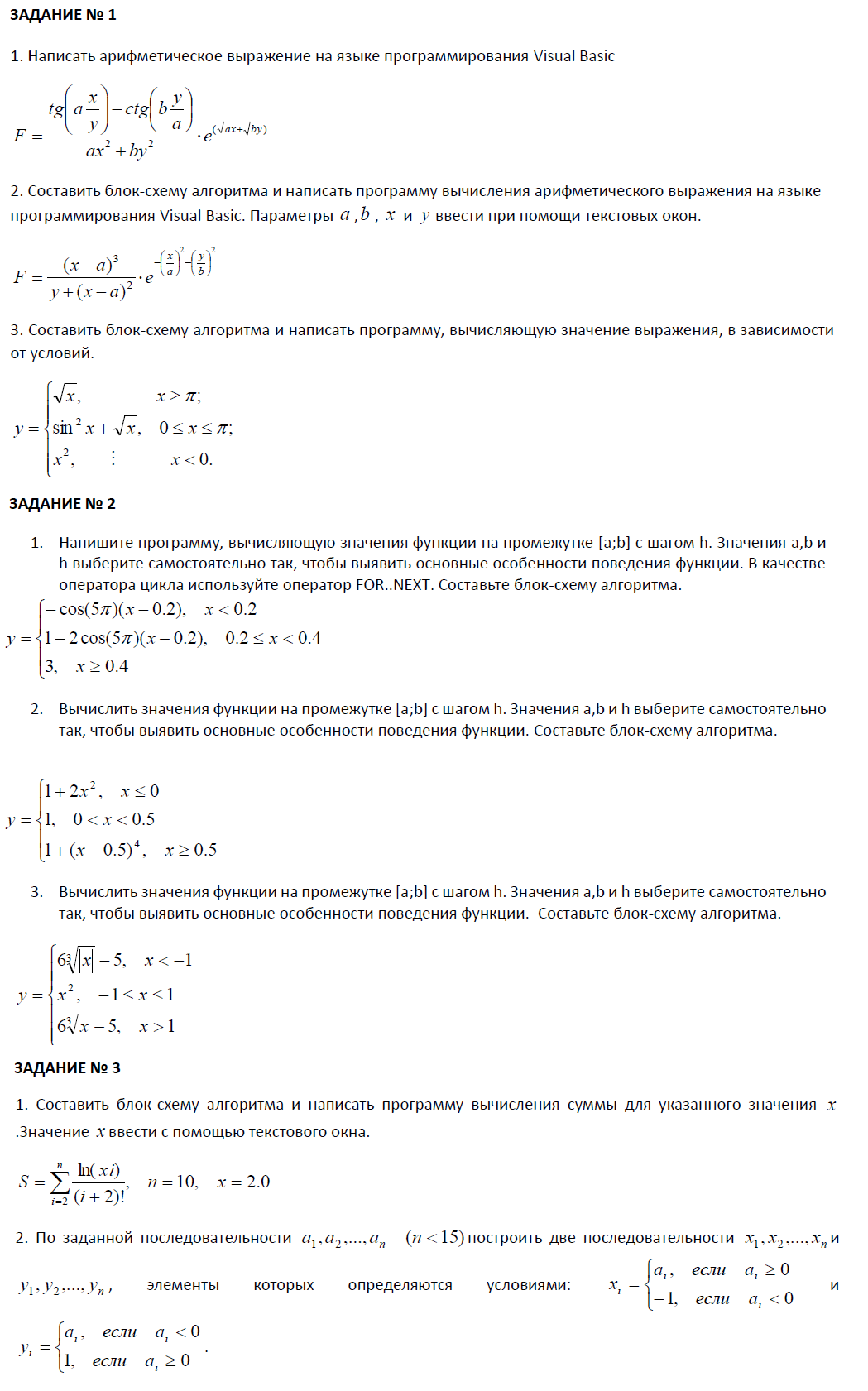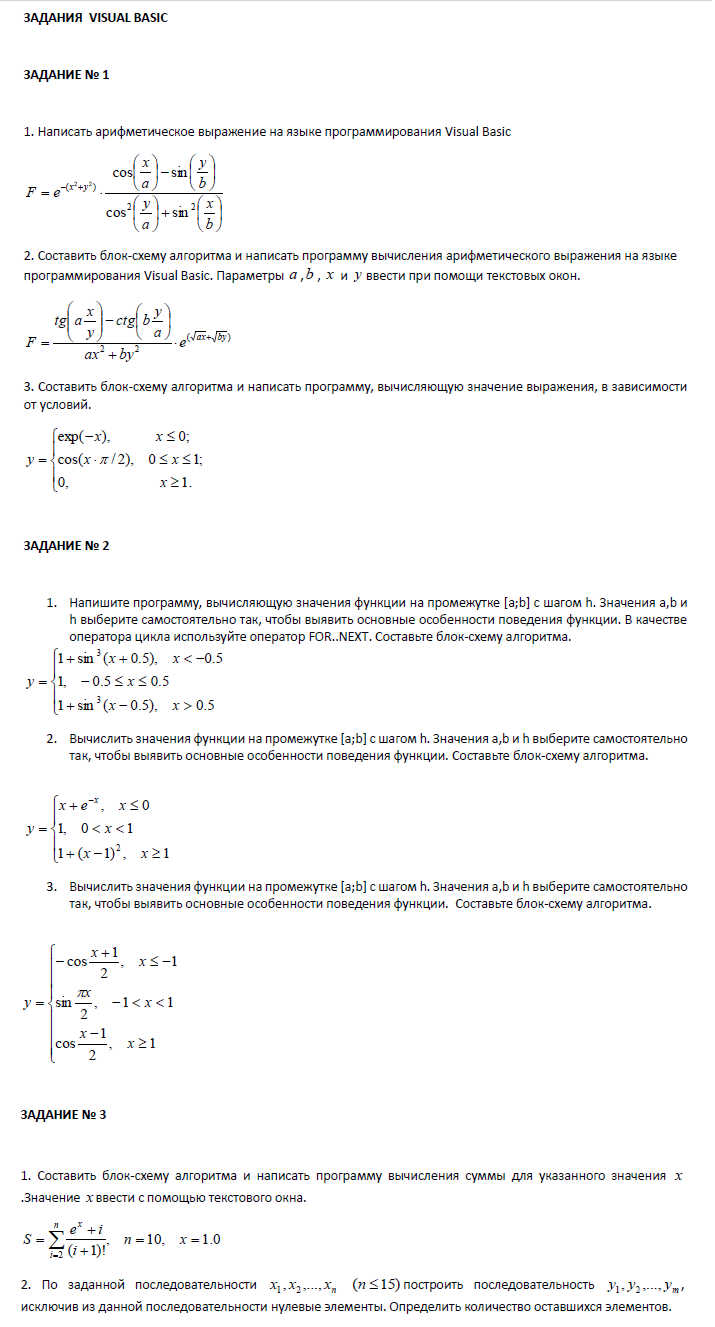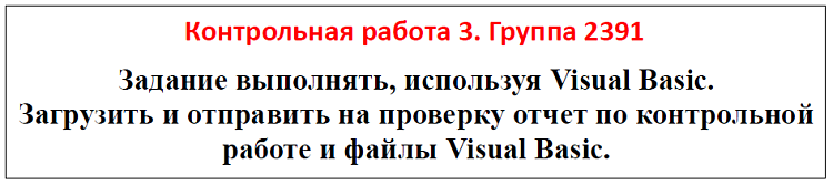Контрольная работа в Visual Basic состоит из 3 заданий.