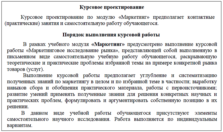 Курсовое проектирование - модуль маркетинг.