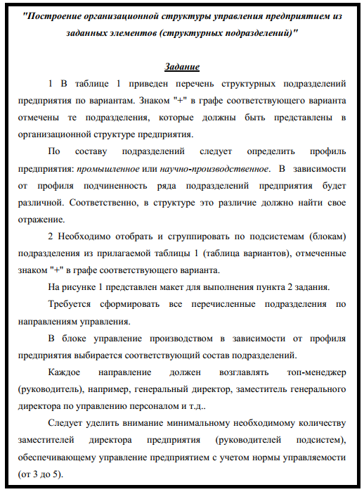 - Контрольная работа №2. Построение организационной структуры управления предприятием из заданных элементов (структурных подразделений)