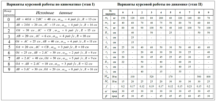 Курсовая работа состоит из кинематики и динамики.