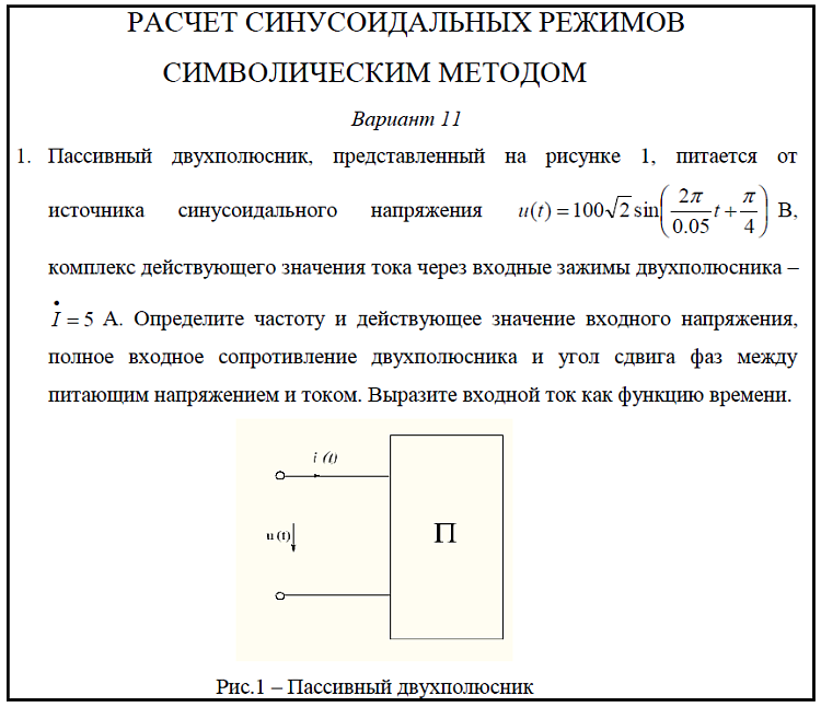 Расчет синусоидальных режимов символическим методом