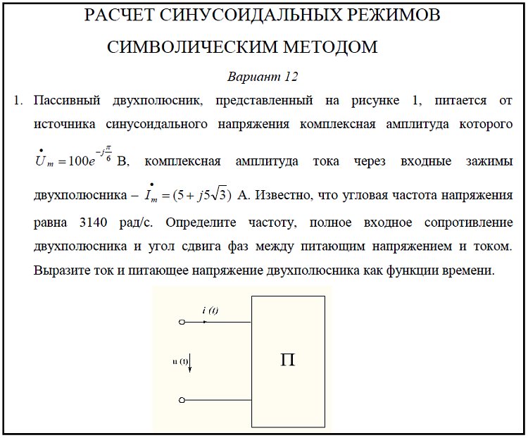 Расчет синусоидальных режимов символическим методом