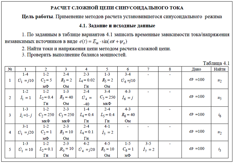 - Расчет сложной цепи синусоидального тока(методичка 4)