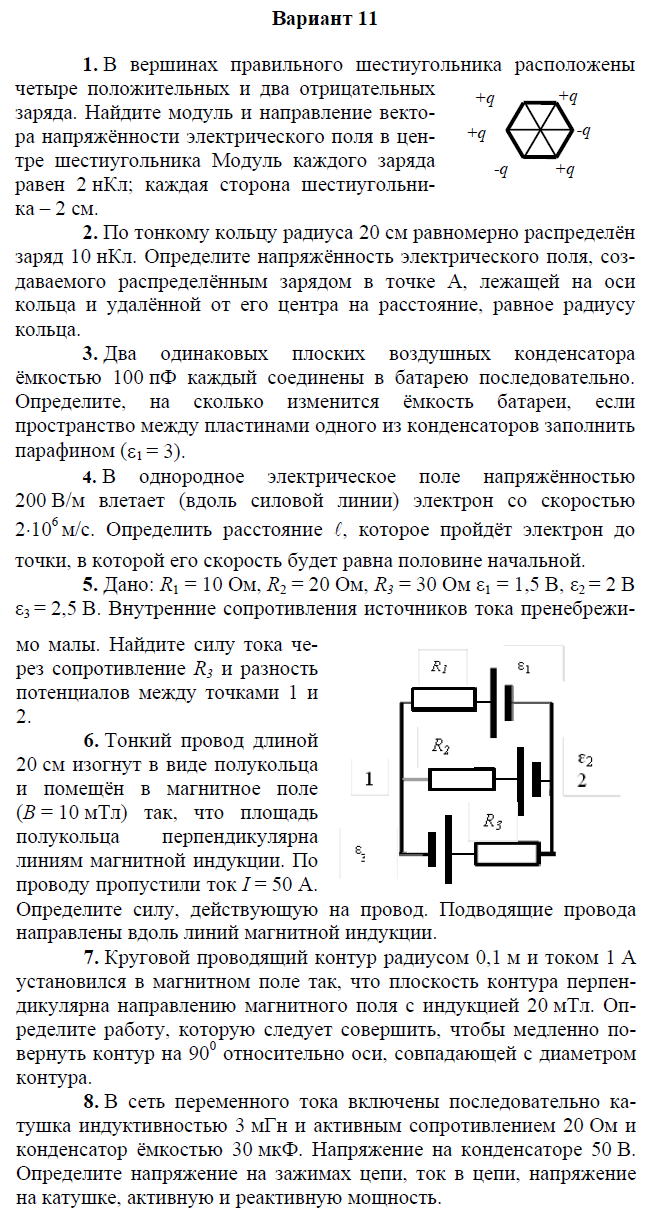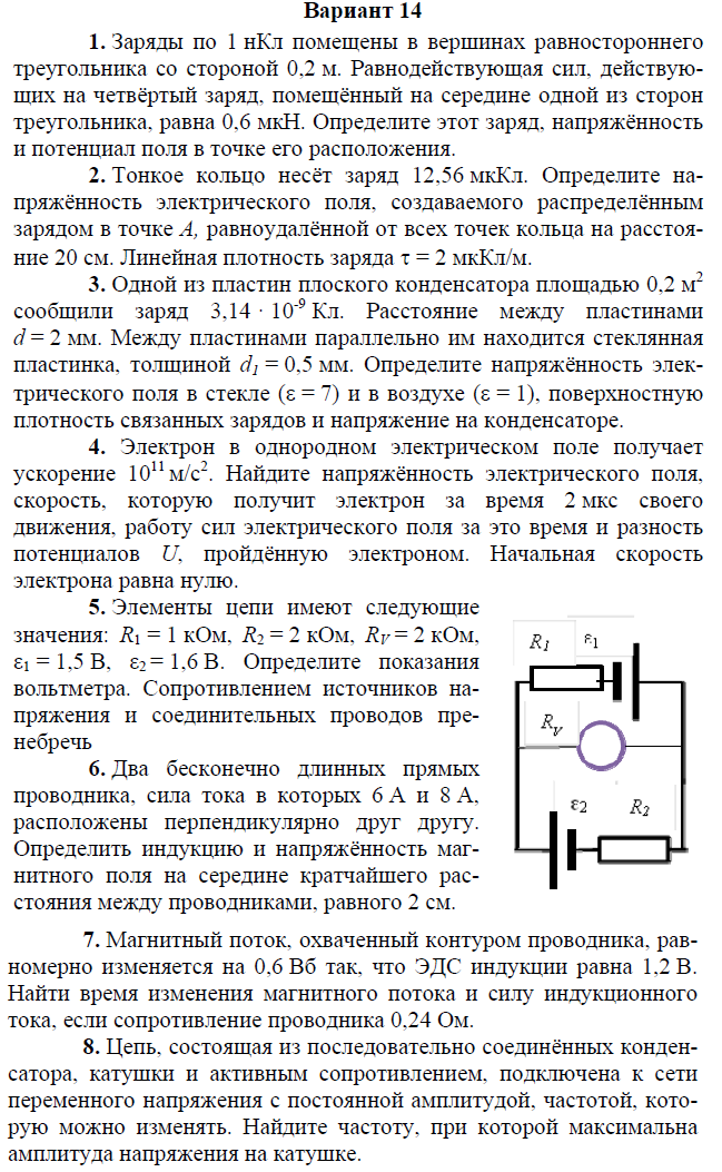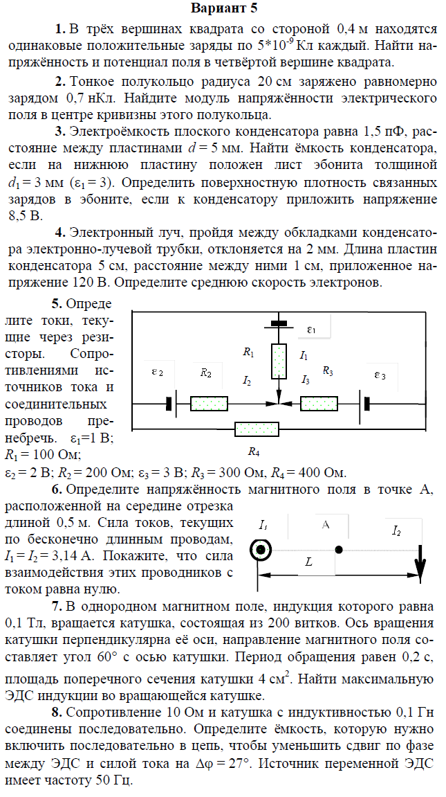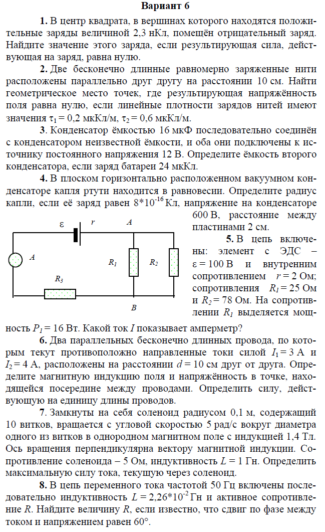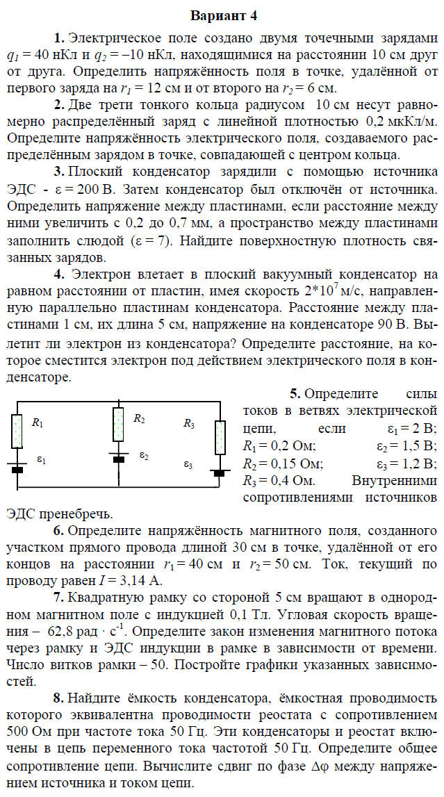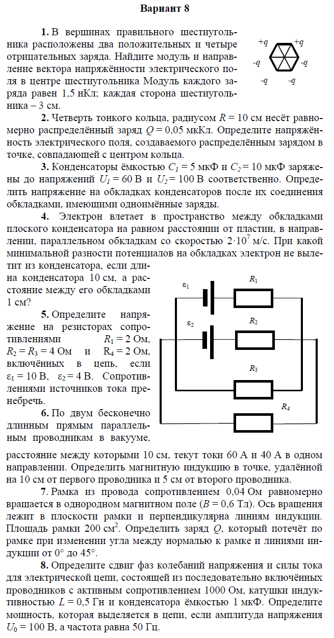 Контрольная работа по электричеству и магнетизму состоит из 8 задач