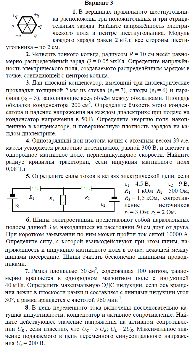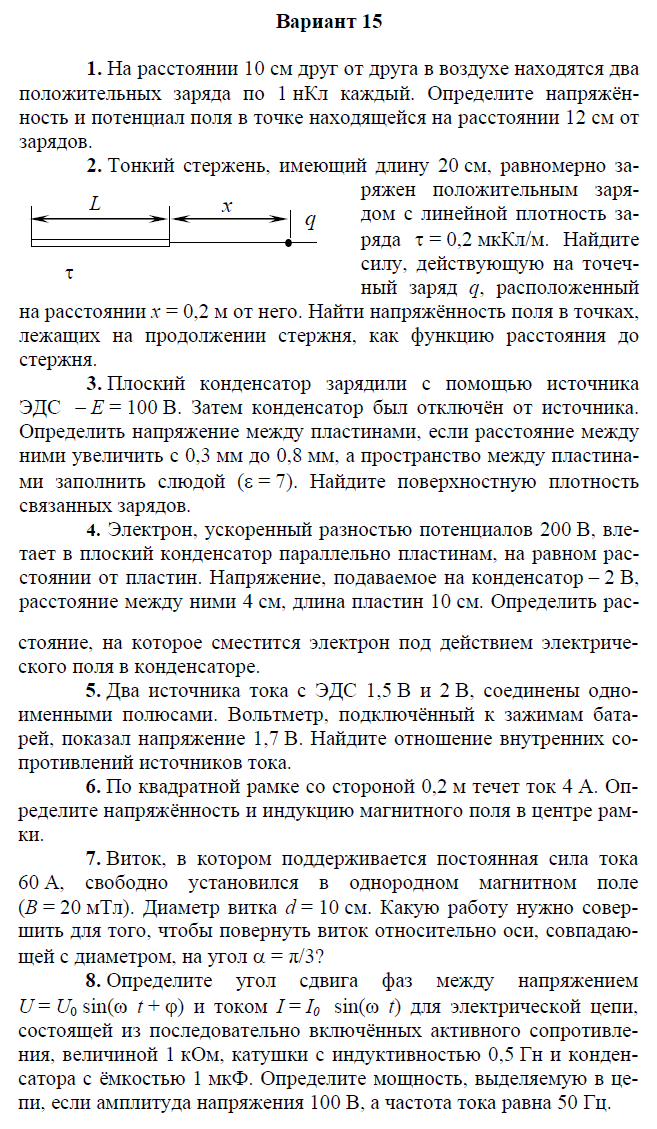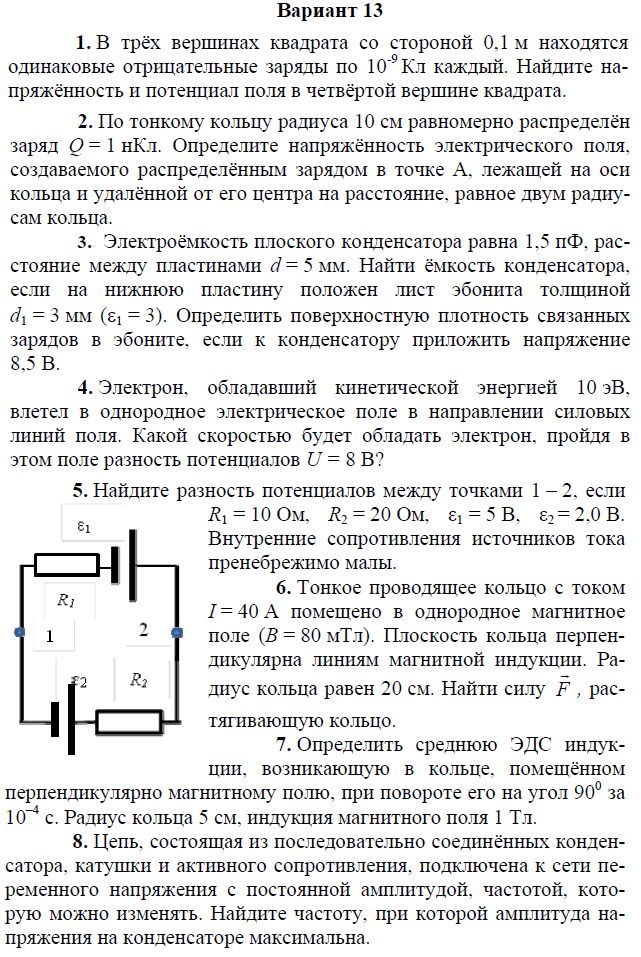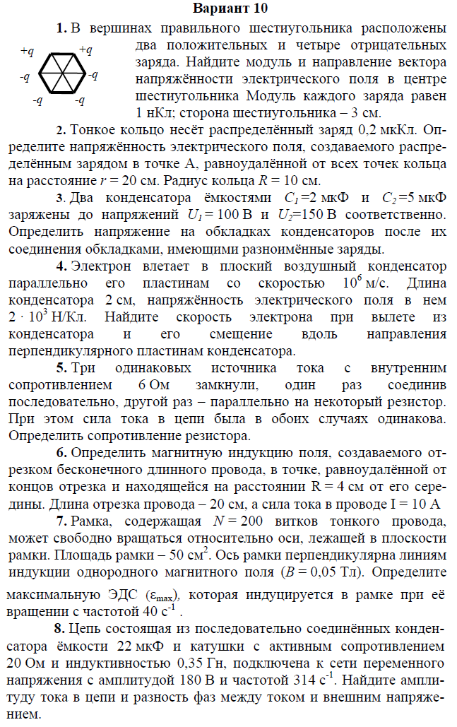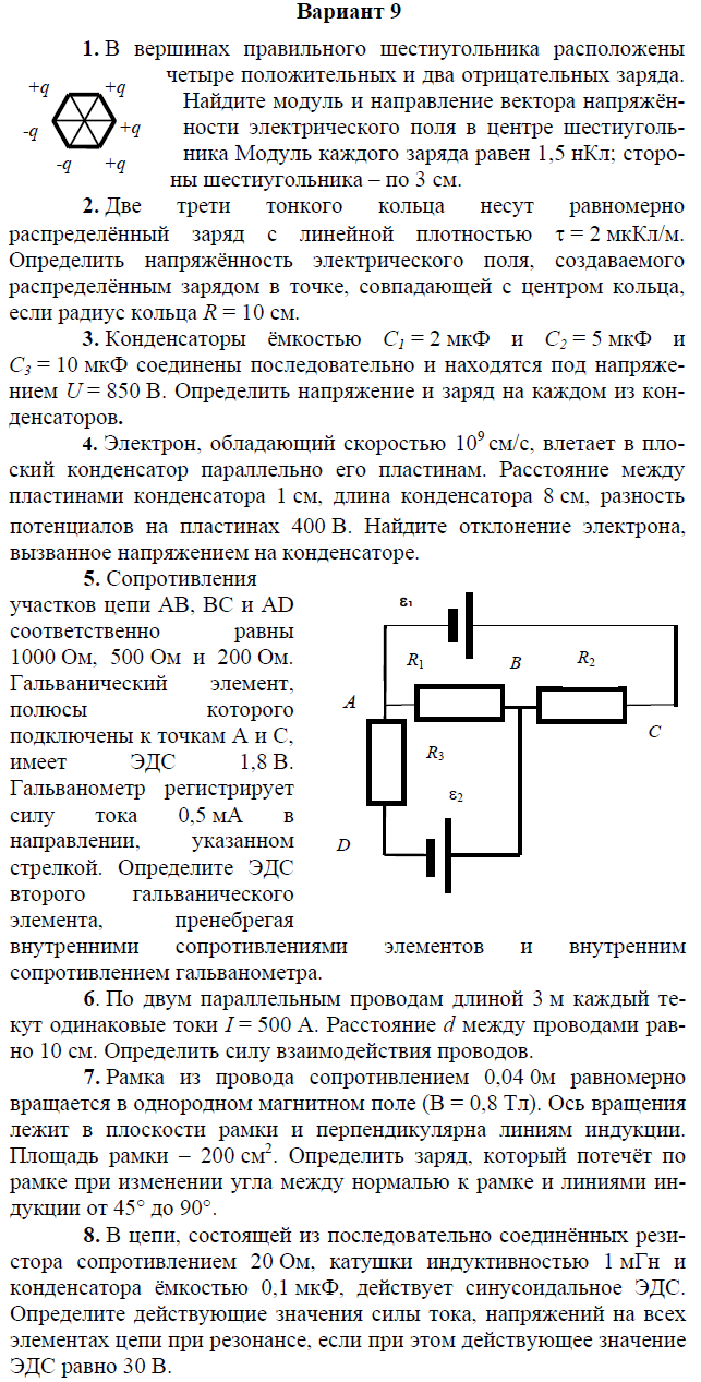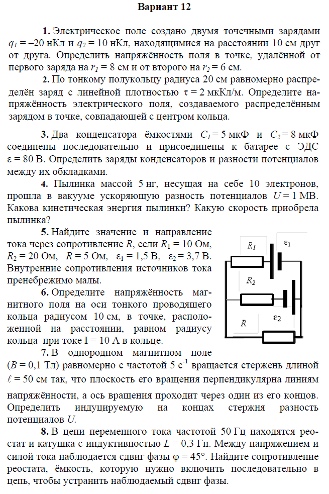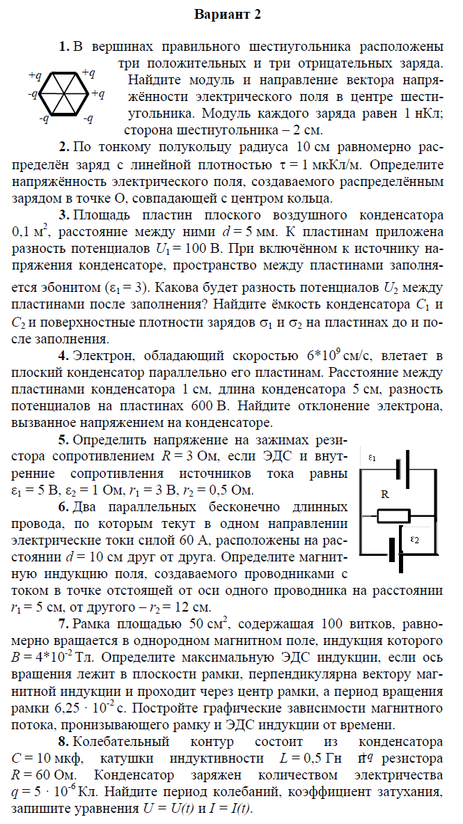 Контрольная работа по электричеству и магнетизму состоит из 8 задач