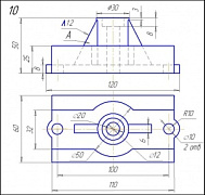 Начертить: а) главный вид в соединении с фронтальным разрезом; б) вид сверху; в) вид сверху в соединении с профильным разрезом; г) вынесенное сечение ребра жёсткости А; д)прямоугольную изометрическую проекцию детали.