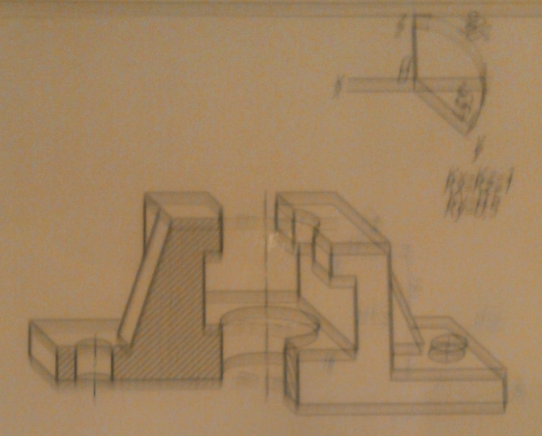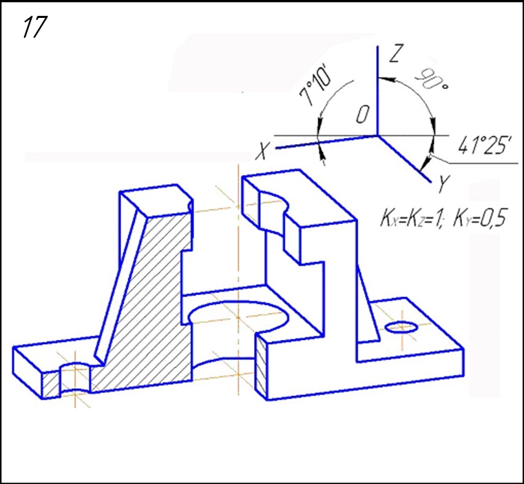 Начертить: а) главный вид детали в соединении с фронтальным разрезом; б) вид сверху; в) вид слева в соединении с профильным разрезом; г) данную аксонометрическую проекцию детали.