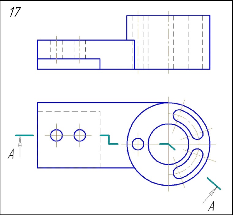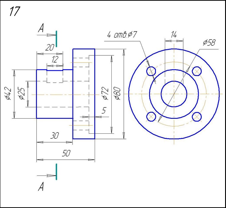 Начертить: а) разрез А-А; б) вид сверху; в) вид слева.