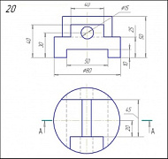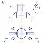 Задание: Начертить: а) главный вид в соединении с разрезом А-А;б) вид сверху;в) вид слева в соединении с профильным разрезом.