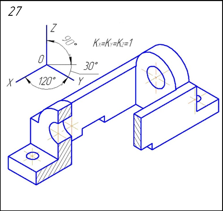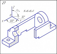 Начертить: а) главный вид детали в соединении с фронтальным разрезом; б) вид сверху; в) вид слева в соединении с профильным разрезом; г) данную аксонометрическую проекцию детали.