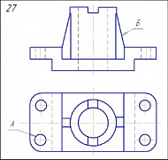 Начертить: а) главный вид в соединении с фронтальным разрезом; б) вид сверху; в) вид слева в соединении с профильным разрезом; г) местный разрез по отверстию А;д) вынесенное сечение ребра жёсткости Б.