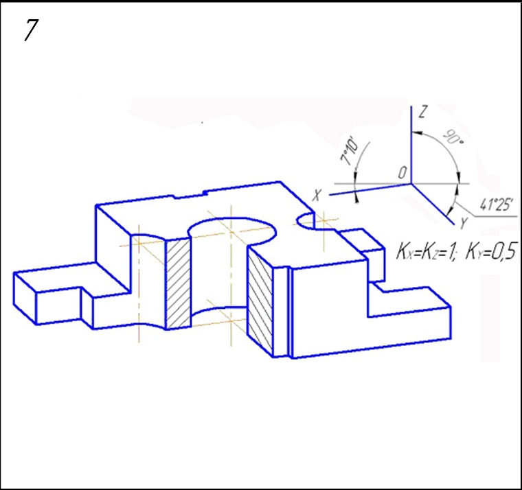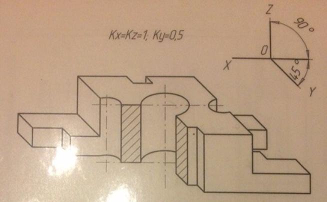 Начертить: а) главный вид детали в соединении с фронтальным разрезом; б) вид сверху; в) вид слева в соединении с профильным разрезом; г) данную аксонометрическую проекцию детали.