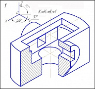 Начертить: а) главный вид детали в соединении с фронтальным разрезом; б) вид сверху; в) вид слева в соединении с профильным разрезом; г) данную аксонометрическую проекцию детали.