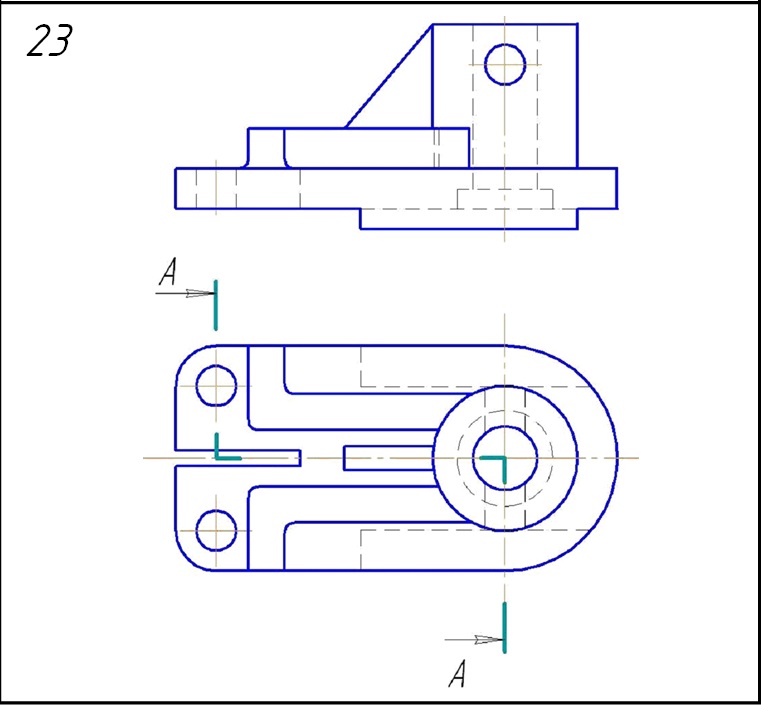 Задание: Начертить: а) фронтальный разрез; б) вид сверху; в) на месте вида слева разрез А-А; г) вынесенное сечение ребра жёсткости; д) прямоугольную изометрическую проекцию детали с разрезом.