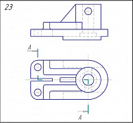 Начертить: а) главный вид детали в соединении с фронтальным разрезом; б) вид сверху в соединении с горизонтальным разрезом по оси отв. А; в) вид слева в соединении с профильным разрезом; г) данную аксонометрическую проекцию.