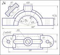 Начертить: а) главный вид в соединении с фронтальным разрезом; б) вид сверху; в) вид слева в соединении с профильным разрезом; г)косоугольную диметрическую проекцию детали с разрезом.
