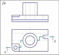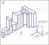 Задание: Начертить: а) фронтальный разрез; б) вид сверху; в) вид слева в соединении с профильным разрезом по оси отв. А; г) данную аксонометрическую проекцию детали.