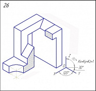 Начертить: а) фронтальный разрез; б) вид сверху; в) вид слева в соединении с профильным разрезом; г) данную аксонометрическую проекцию.