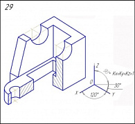Начертить: а) фронтальный разрез; б) вид сверху; в) вид слева в соединении с профильным разрезом; г) данную аксонометрическую проекцию детали