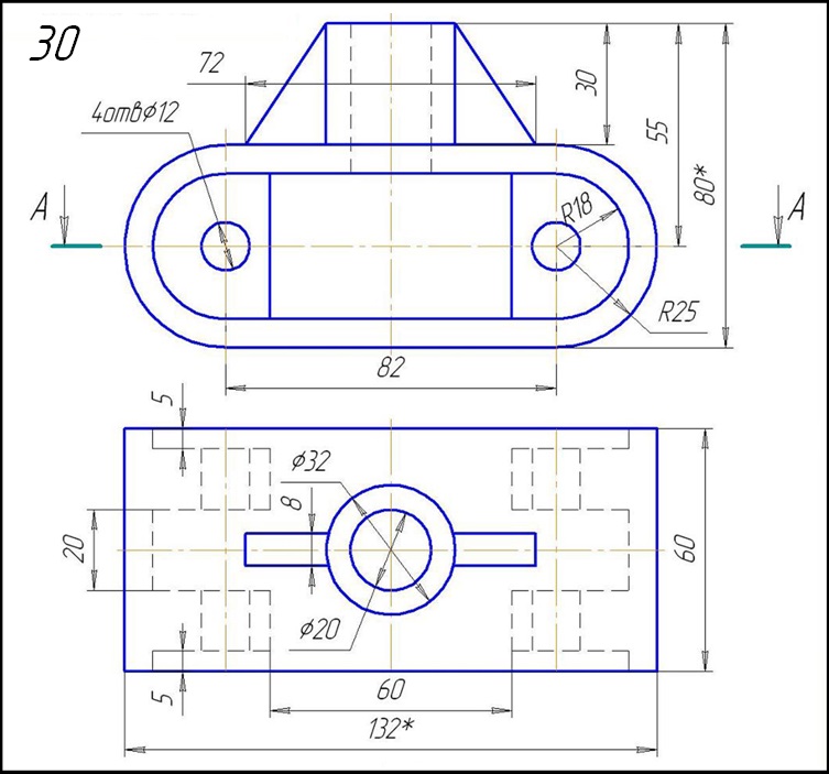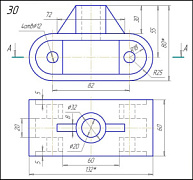 Задание: Начертить: а) главный вид в соединении с фронтальным разрезом; б) вид сверху в соединении с разрезом А-А; в) вид слева в соединении с профильным разрезом; г) прямоугольную изометрическую проекцию детали с разрезом.