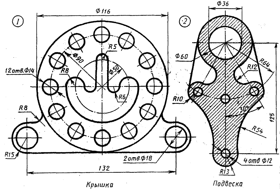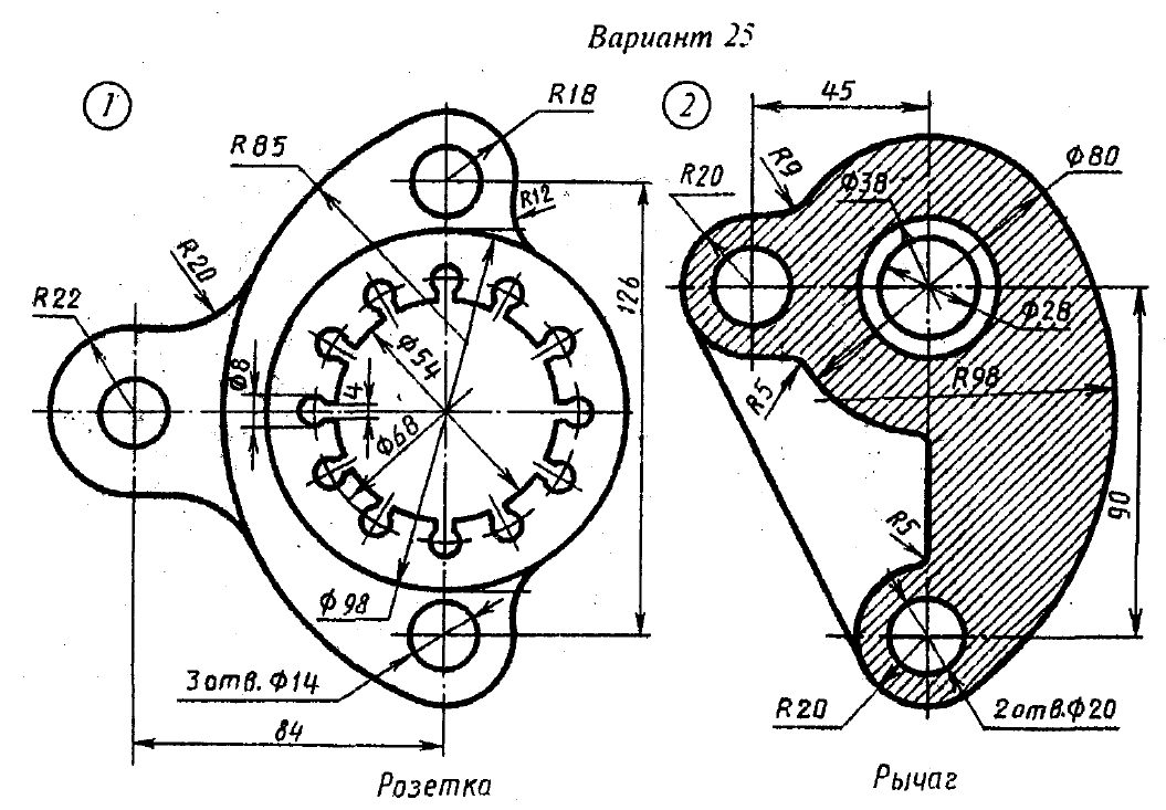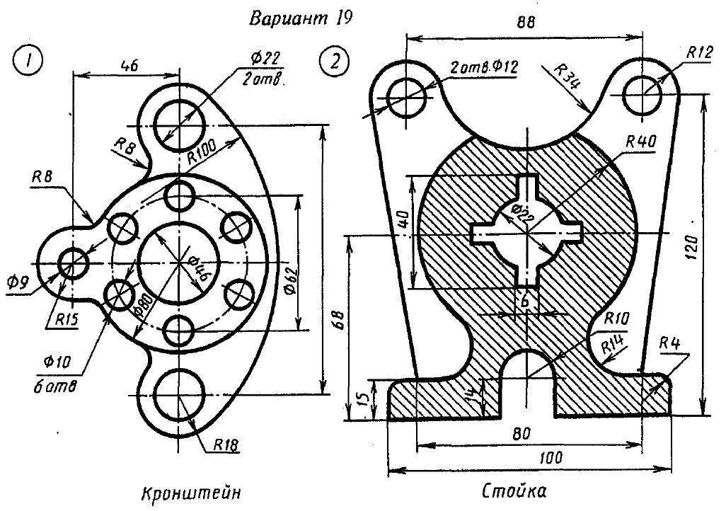 Задание. Вычертить изображения контуров деталей и нанести размеры