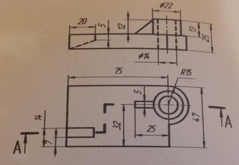 3. На одном из видов выполнить ступенчатый разрез, заданный секущей плоскостью А-А.