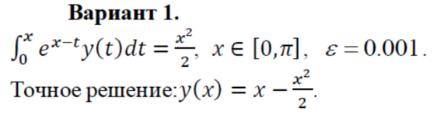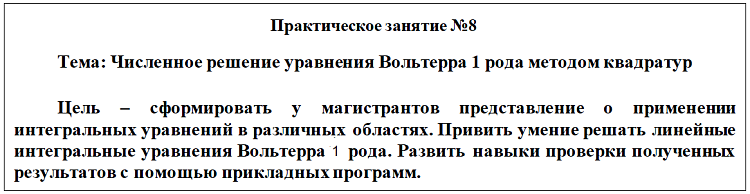 - Практическое задание №8. Численное решение уравнения Вольтерра 1 рода методом квадратур