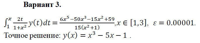 Тема: Численное решение уравнения Вольтерра 1 рода методом квадратур.