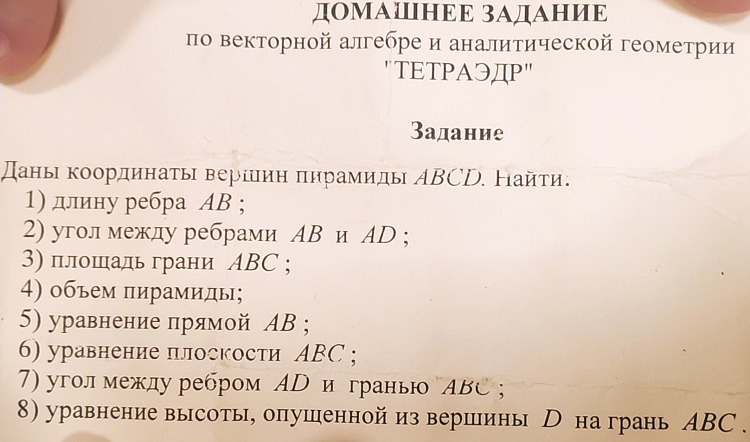 Домашнее задание по векторной алгебре и аналитической геометрии "Тетраэдр"