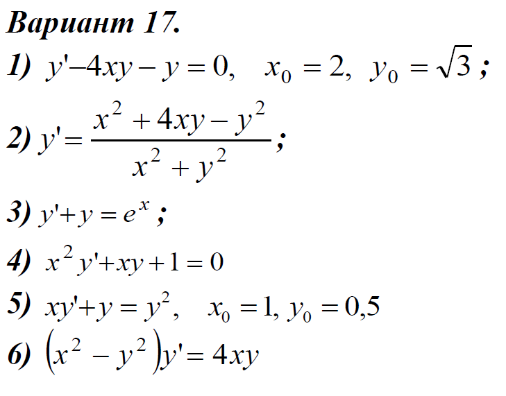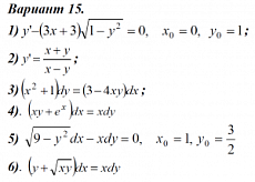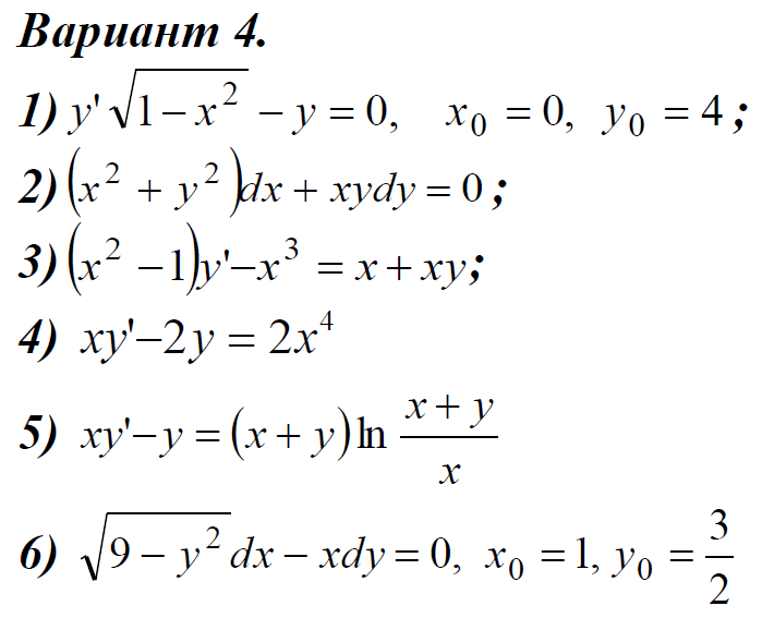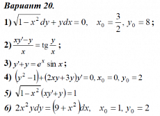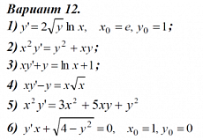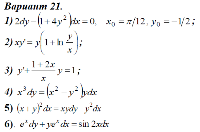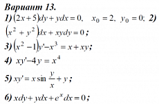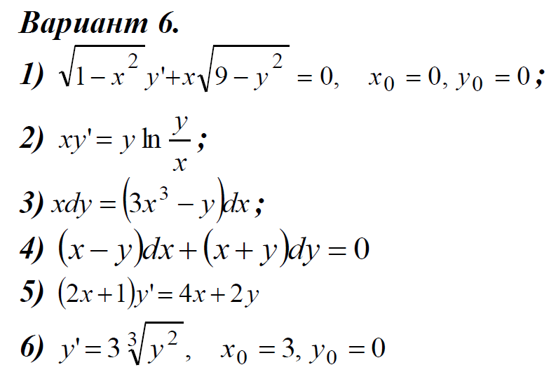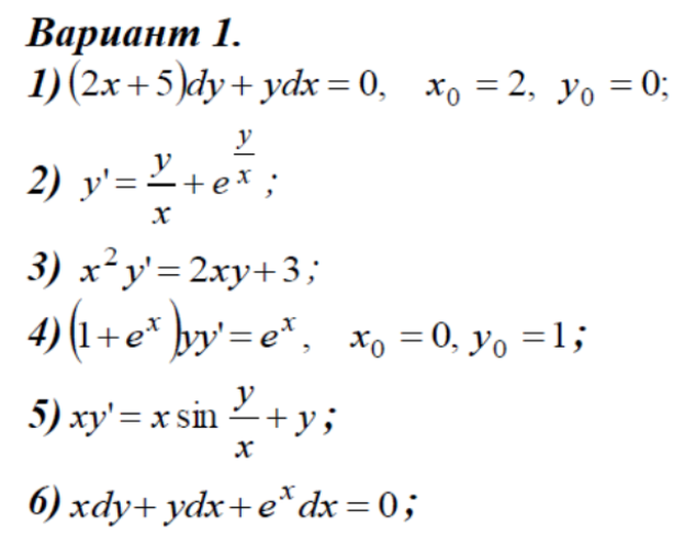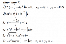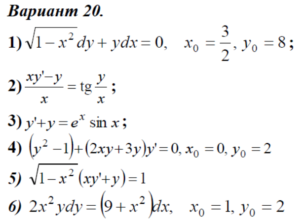Задание. Решить дифференциальные уравнения. Если даны начальные условия, найти частные решения.