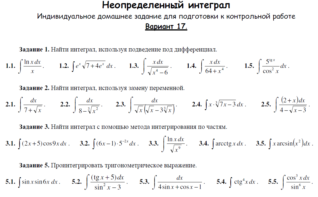 Тема. Неопределенный интеграл