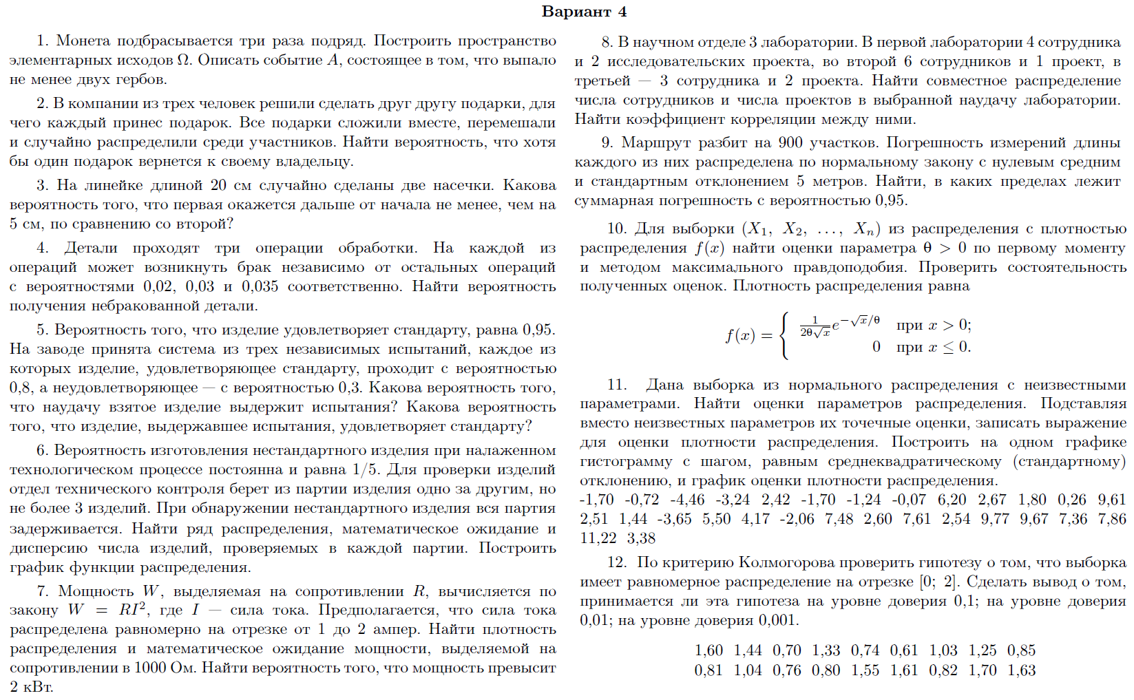 Контрольное задание состоит из 12 задач