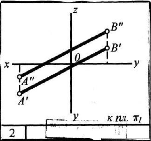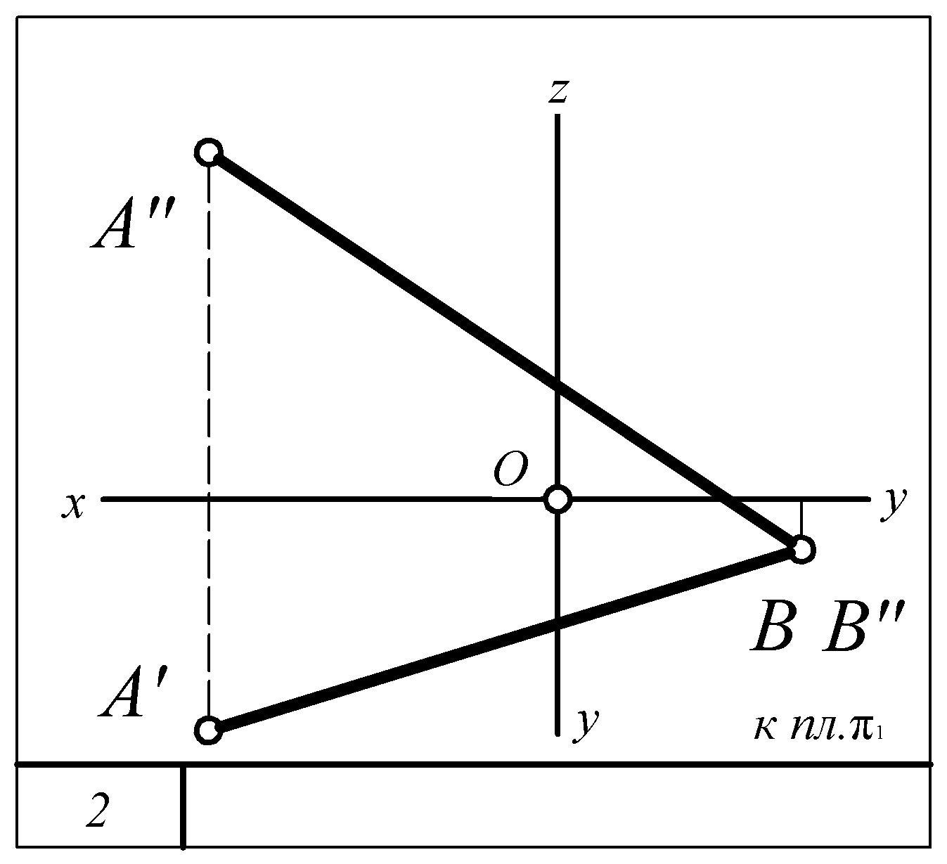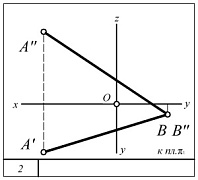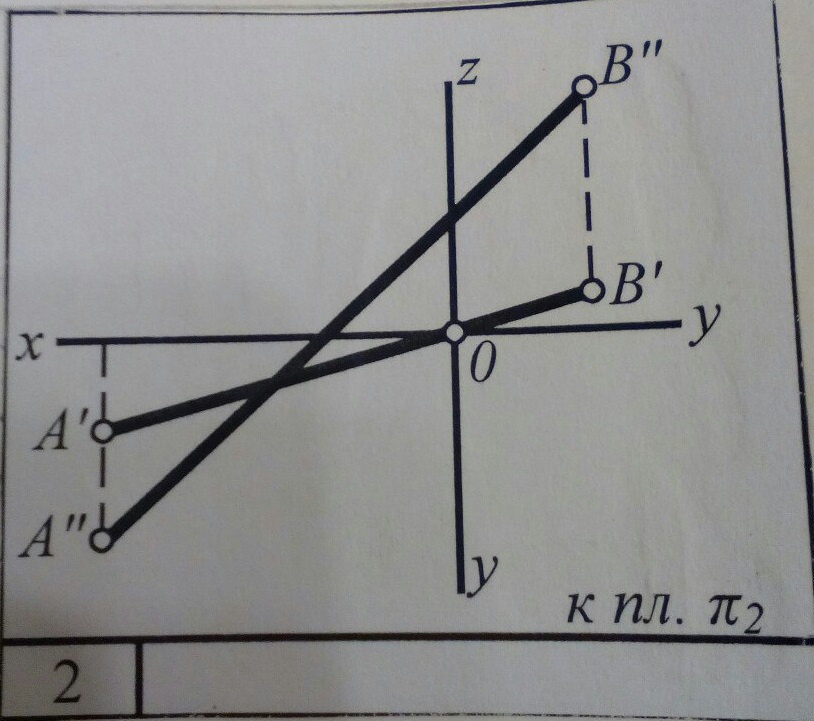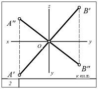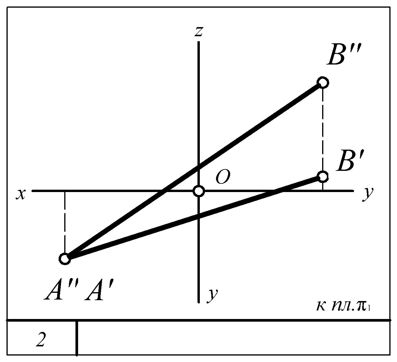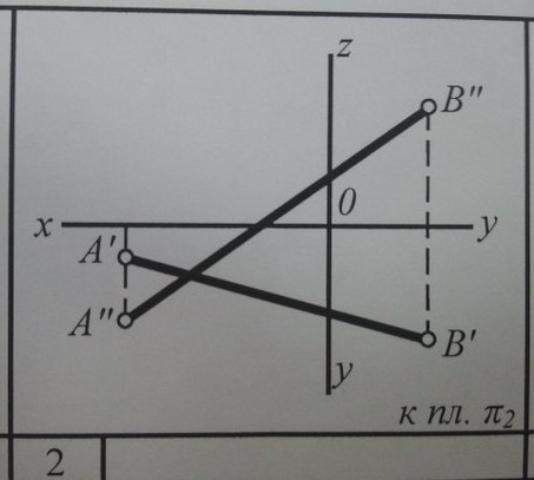Задание: По двум заданным проекциям отрезка прямой АВ построить его третью проекцию. Построить следы прямой. Определить истинную величину отрезка АВ и угол наклона прямой к плоскости проекций, указанной в задании. Определить октанты, через которые проходит заданная прямая.