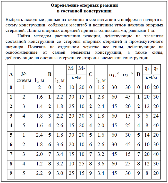 Тема: Определение опорных реакций в составной конструкции.