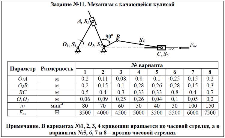 - Задание №11. Механизм с качающейся кулисой